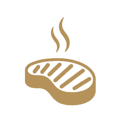 Bistec frito en su salsa con aceite, ajo y vino blanco, lonchas de jamón y patatas fritas en radajas